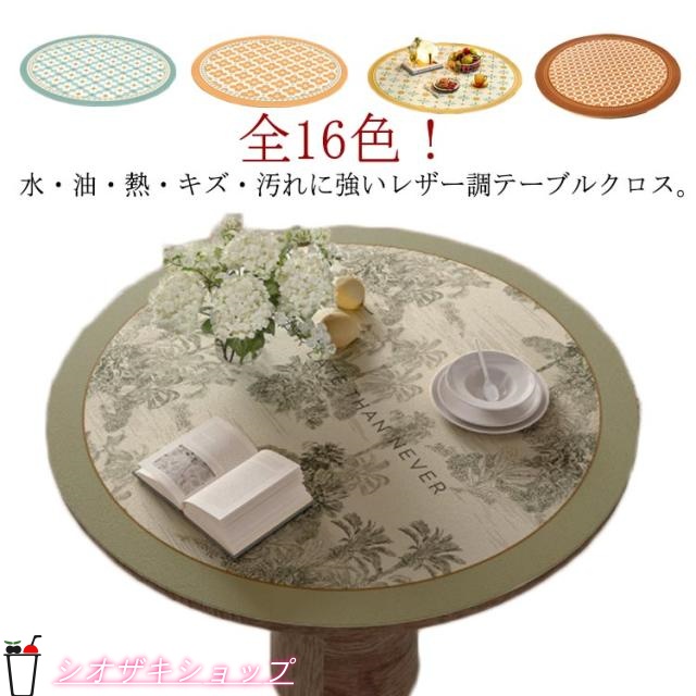 ■円形 撥水 丸形 テーブルマット PUレザー レトロ 防水 耐熱 キズ防止 防油 食卓カバー テーブルカバー 汚れ防止 テーブルクロス 花柄 総