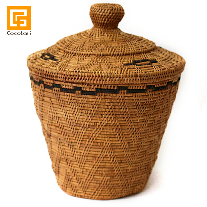 ■商品説明おなじみ、バリのアタで編まれたフタ付きバスケットの紹介です。ぽってり丸い取っ手付きのフタに、つぼ型のフォルムがなんともかわいいですね。フタ付きだから、急なお客さまでも、見せたくないものはとりあえずここに入れておけば、お部屋がすっきり片付きます。このとんがり帽子のフタは、見た目のかわいさだけでなく、実際に取っ手に触れてみると、そのつかみやすさに感動します。手のひらになじむほどよい大きさで、子どもでもお年寄りでも使いやすいと思います。リビングや洗面所で小物入れとして、また、お菓子を入れて、そのままテーブルに出しても絵になりそうです。■サイズ直径:約20.5cm 高さ:約26cm■素材アタ■生産地バリ島■関連情報バリ雑貨、バリ島、アジアン雑貨、ハンドメイド、手作り、アジアンテイスト、リゾートホテル、お部屋、アタ製品、ナチュラル、バリ風、インテリア、おしゃれ、デザイン、収納、ボックス