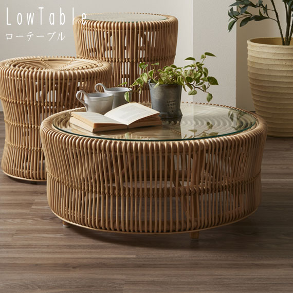 ■Breeze Series シリーズ ラタン ローテーブル (ローテーブル 円形 ラタン 丈夫 透け感 軽やか ガラス アジアン 天然素材 リゾート ホテ