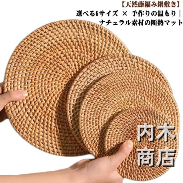 ■レビュー高評価商品 人気急上昇 鍋敷き テーブルウエア キッチン小物 洗える 毎日使える便利品 ポップ 藤編み 円形 天然素材 ラウンド ア