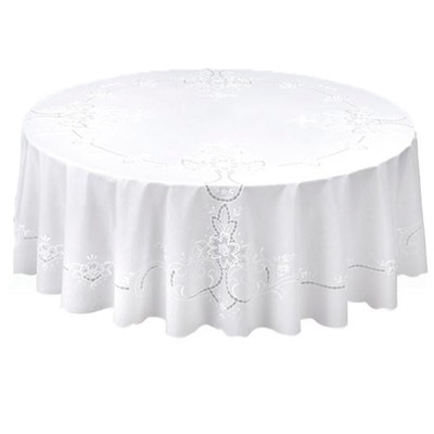 ■テーブルクロス 洋風 すべり止め 花柄 エレガント レース 上品 152cm 丸 ホワイト 【 送料無料 】