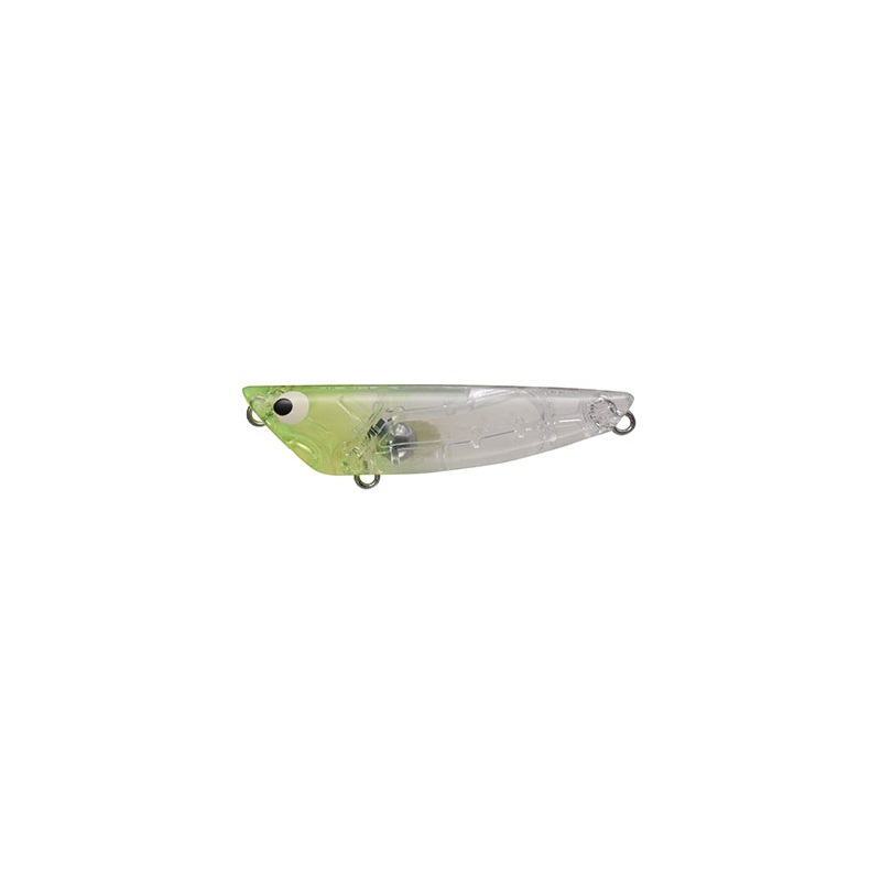 甘いポップ音とテーブルターンでネチネチとアピール。エリア専用ポッパー。必要以上に潜り込まない甘いポップ音でトラウトの注意を引き、スライド幅の短いテーブルターンで口を使わせることが可能。スリムに絞り込まれたテール部分は、テーブルターンをさせやすくするとともに、噛み付き型のバイトであるトラウトの口をこじ開けることなくスムーズにフッキングに持ち込むことが出来る。