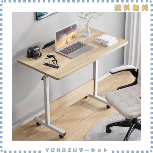 ◆商品名:Rshtong 昇降デスク 折りたたみテーブル パソコンデスク 北欧 机 高さ調整 テーブル 幅80cm×奥行40cm PCデスク サイドテーブル キャスタ
