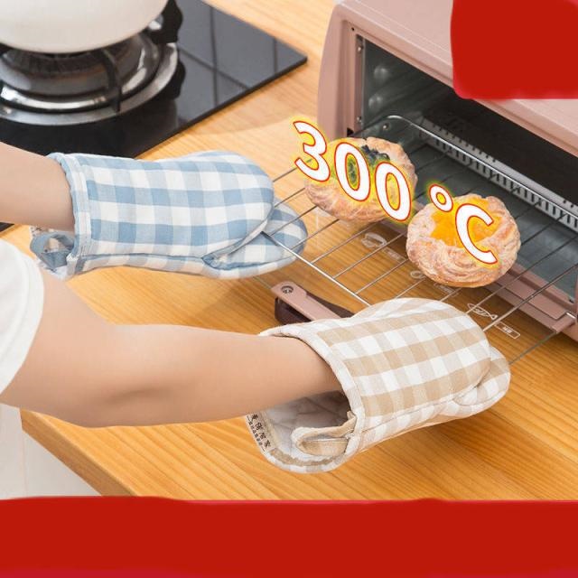■鍋つかみ ミトン 耐熱 オーブンミット 2枚セット コットン ラップ付き 北欧 チェック柄 テーブル 食卓 アウトドア バーベキュー 料理作り