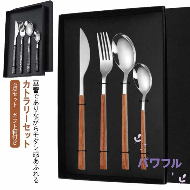 ■軽量仕様 売上急増中 柄 4点セット 大理石 テーブル フォーク 食器 スプーン 北欧 ディナー ケース付き おしゃれ カトラリーセット 木目