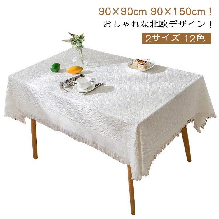 テーブルクロス 綿麻 リネン 正方形 90*90cm テーブルクロス 食卓カバー 北欧 テーブル クロス 撥水加工 無地 タッセル付き デスクカバー ダイニング キッチン テーブルカバー マえる ナチュラル 家庭用 業務用 送料無料