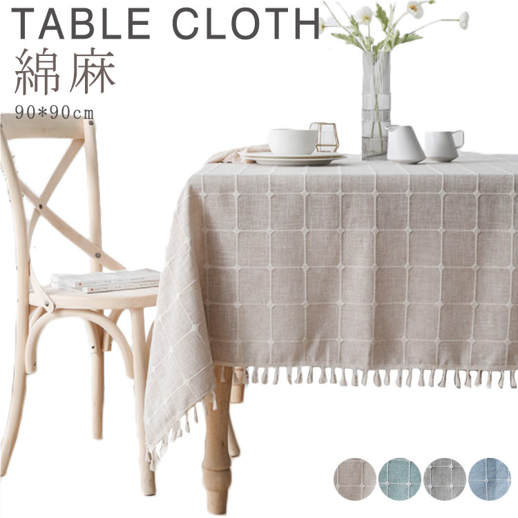 ■テーブルクロス 食卓カバー 北欧 90*90cm テーブルクロス 綿麻 リネン 正方形 テーブル クロス タッセル付き デスクカバー ダイニング キ