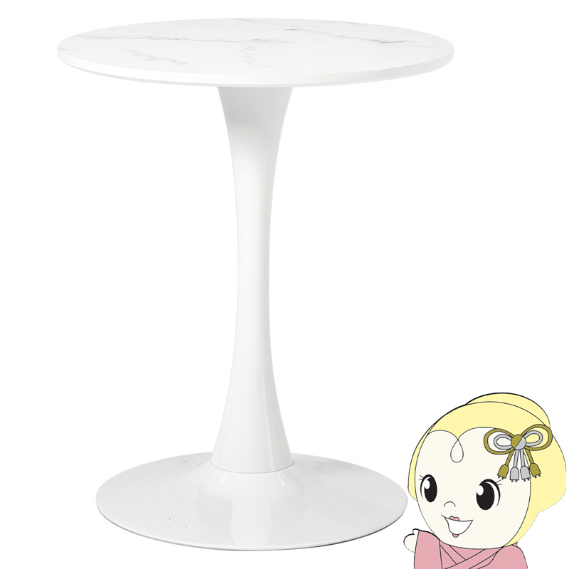 ■カフェテーブル 2人用 ダイニング おしゃれ 円形 丸 ミッドセンチュリー 韓国風 デスク 食卓 机 60cm 1本脚 大理石模様 マーブルホワイ