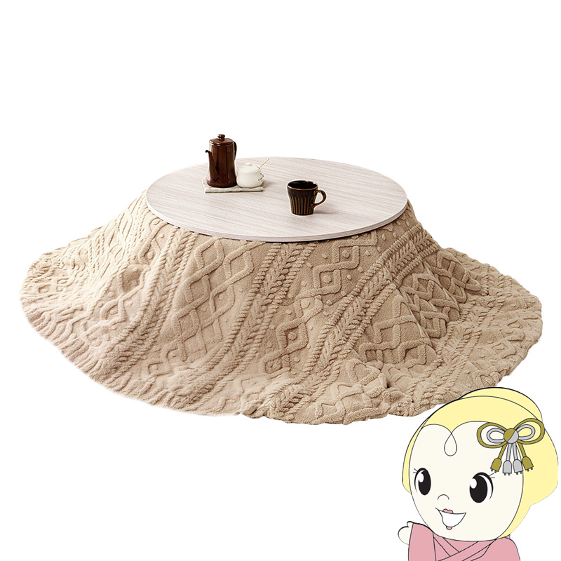 天板がリバーシブルでオールシーズン活躍するカジュアルコタツ。立体的なデザインがおしゃれな掛け布団セット ●天板は表裏の2色が楽しめるリバーシブル仕様 ●シンプルなデザインなので夏でもローテーブルで使えます ●1〜2人暮らしにピッタリのサイズ感 ●他の暖房器具に比べて消費電力が低いので経済的 ●ケーブルニットの凸凹を再現 ジャガード織り ●ふんわり軽くて暖かい 毛足の長いボア生地 ●製品仕様 生産地:こたつ:インドネシア製、ヒーター:マレーシア製、布団:中国製 サイズ:こたつ:(約)幅80×奥行80×高さ35.5cm、掛ふとん:(約)直径190cm 素材:こたつ:<天板>パーチカルボード PVCシート張り <ヒーター>MS-303H 石英管ヒーター(中間スイッチ)、ふとん:< 側地><中材>ポリエステル100% 補足説明:組立式、天板リバーシブル仕様 ※お客様組立て品につきましては、組み立て後に不良の連絡をされても対応ができません。組み立て前にパーツに不良・傷等がないか、必ずご確認下さいますようよろしくお願い申し上げます。 ※記載は商品仕様の一部です。仕様説明不足等の理由での返品は