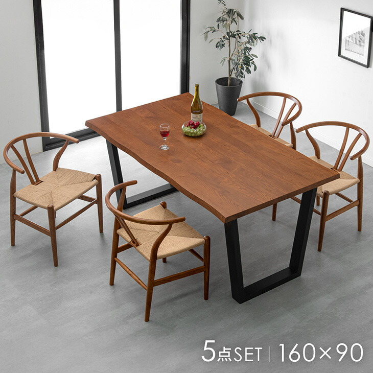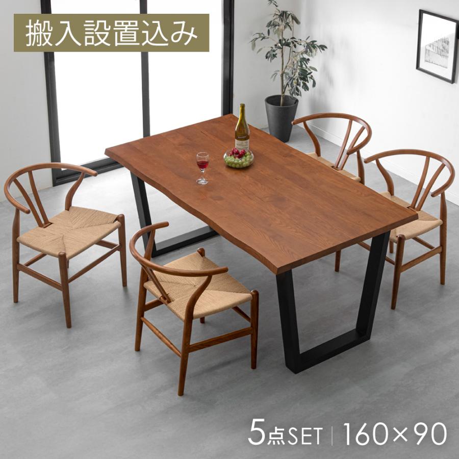 ■【テーブル搬入設置込み】 北欧モダン ダイニングテーブルセット 4人掛け 天然木 アッシュ 5点セット 160cm テーブル 長方形 ダイニング