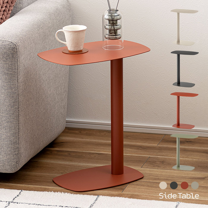 アンシンメトリー×機能性。デザイナーズホテルのような空間を演出する、スチール製サイドテーブル。 マットな質感のスチールパーツを組み合わせたアンシンメトリーなデザインのモダンな現代アートのような、サイドテーブルです。 リビングのソファやベッドサイドでスマートにお使いいただける天板 約28×42cm。 耐荷重は約10kgで、スマホや本、コップ、メガネなどの小物を置くのはもちろん、小さめのデスクとしてノートパソコンやタブレットも安心して置け、観葉植物などのディスプレイにもお使いいただけます。 薄型の台座でソファ下やベッド下に差し込めるので、使いやすく位置調整できます。 重さは約5kgと軽量ですので、気軽に移動できます。 ベージュ、ダークグレー、オレンジ、ペールグリーンの4カラーをご用意致しました。 北欧風のカラーとミニマムでスタイリッシュな雰囲気は、デザイナーズソファやホテルライクインテリアなどにもぴったりで、お部屋にアクセントをプラスします。