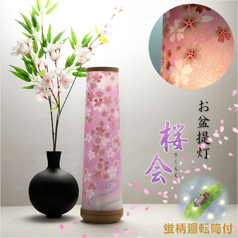 ■お盆提灯【モダンな盆提灯 桜会(さくらえ)・蛍廻転筒付 一重・コンセントタイプ】お盆用品 お盆飾り 霊前灯 仏壇用仏具 新盆 初