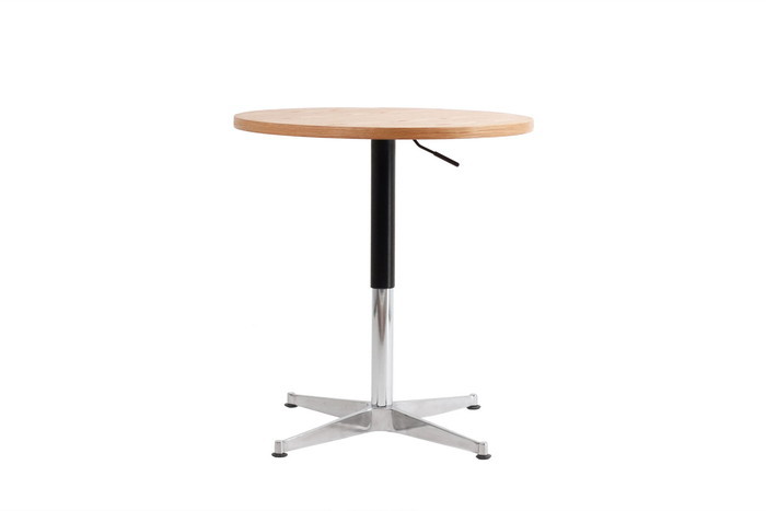 ■ラウンドリフトテーブル 天板: オーク突板仕上げ 脚部:アルミナムダイキャストポリッシュ仕上げ 直径66xH54-73 e-comfort デザイナーズ