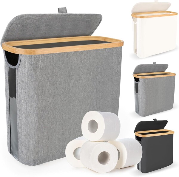 ■トイレ 収納 隙間収納 トイレットペーパー ボックス 26L フタ付き 収納ケース 竹製ハンドル 折りたたみ 透明窓付き スリム収納ボックス 1