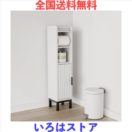 ◆商品名:Druvia トイレ 収納 隙間収納ラック スリム 幅18cm 高さ82.3cm 可動棚 防水素材 省スペース ホワイト
