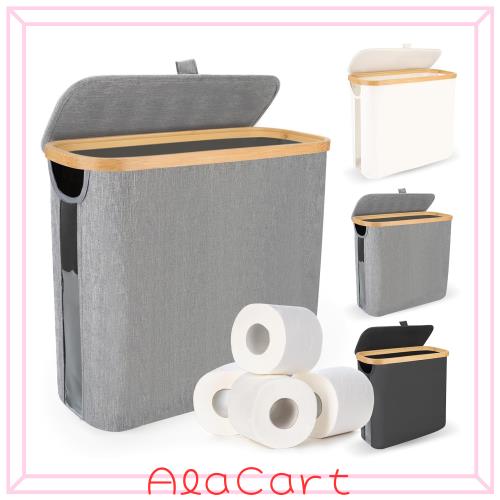 ■トイレ 収納 隙間収納 トイレットペーパー ボックス 26L フタ付き 収納ケース 竹製ハンドル 折りたたみ 透明窓付き スリム収納ボックス 1