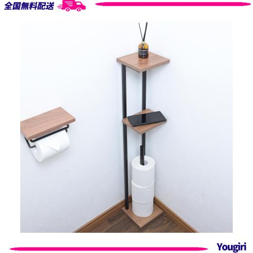 ■[山善] ラック トイレットペーパー スタンド トイレ 収納 スリム 棚付き (スマホ置き/インテリア) トイレットペーパーホルダー 隙間収納