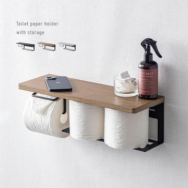 ■左右兼用 トイレットペーパーホルダー ストック収納タイプ(トイレットペーパー ホルダー おしゃれ 棚付き トイレ 収納)