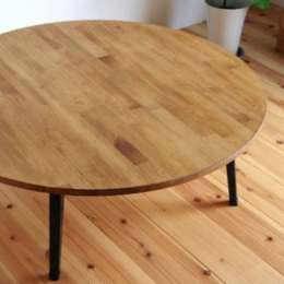 パイン無垢集成材とアイアン脚を使用した丸いローテーブルを作りました。お部屋になじみやすい色合いと、女性でも使いやすい軽さで大変人気の品です。 テーブルの天板は、植物油ベースの安全な塗料「オスモ」のクリアで仕上げていますので、ツヤとコーティング効果があり、お食事などにも安心してご使用いただけます。 手が触れるエッジ部分は、やさしい手触りになるよう少し丸くしています。天板の反り止め付き。丸いローテーブルがあるだけでお部屋が優しい印象に…ご家族や友人と楽しく囲めるローテーブルです。 《家具工房 すみれの散歩道につてい〜夫婦のおもい〜》 大分県豊後高田市で、小さな家具工房を夫婦で営んでいます。 2011年 夫と家具工房+雑貨 すみれの散歩道開業。 2018年春、大分県豊後高田市へ移?