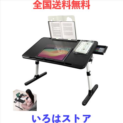 ■WSKLY(ワスクリ) ベッド デスク ラップデスク 折りたたみテーブル ちゃぶ台 大容量天板 角度 高さ調整 引き出し ブックスタンド付き 45kg