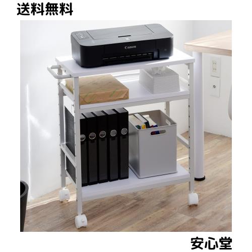 ■山善(YAMAZEN) デスク サイドワゴン キャスター付き 幅35×奥行55(61.5)×高さ70cm A4対応 棚板高さ調節 プリンター 台 ゲーム ラック 組