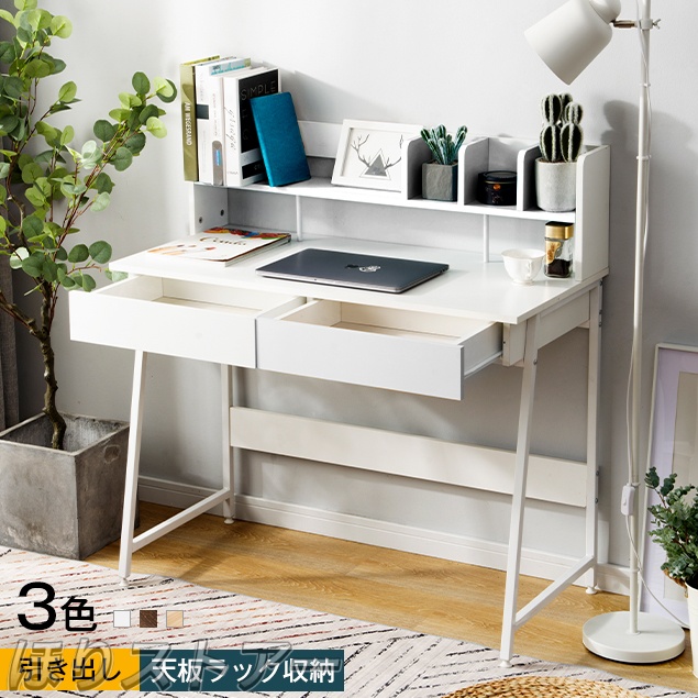 ふぃ パソコンデスク オフィスデスク 引き出し付き デスク おしゃれ 北欧 木製 収納付 座デスク ミシン台 机 シェルフ付きデスク 学習机 勉強机