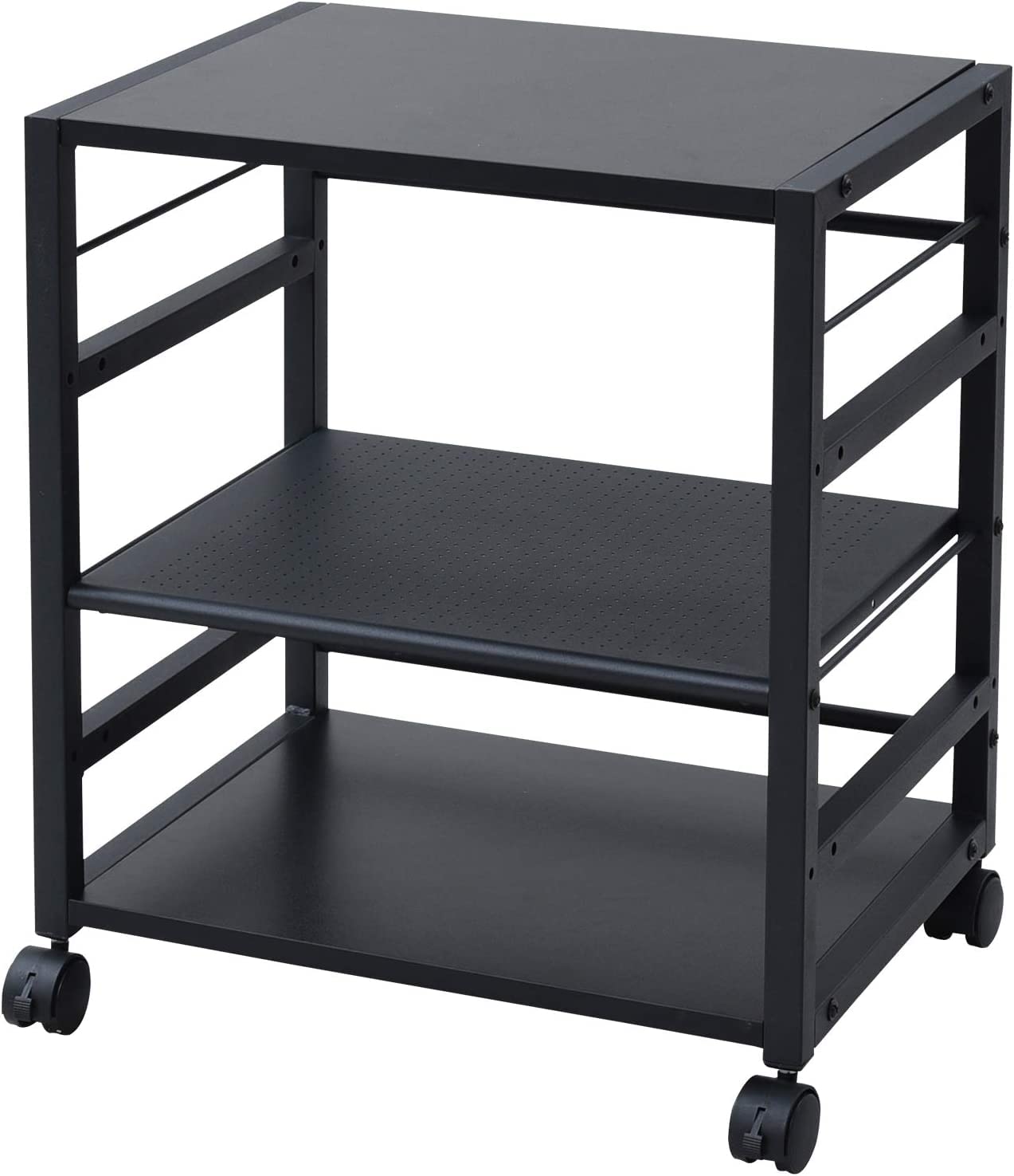 MIYOKI プリンター台 プリンタラック キャスター付き 幅60 奥行50cm 高さ70cm 総耐荷重90kg A3 A4対応 コピー機台 サイド デスク ワゴン デスク下 収納棚 事務用品収納 物置台 中棚9段階調節可能 組立簡単 (ホワイト)