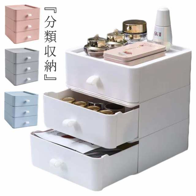■化粧品収納 デスク 文房具収納 書類ケース 事務用品 インテリア 引き出し 卓上 収納ボックス 収納ケース 3段 ティッシュ マスク 小物 引