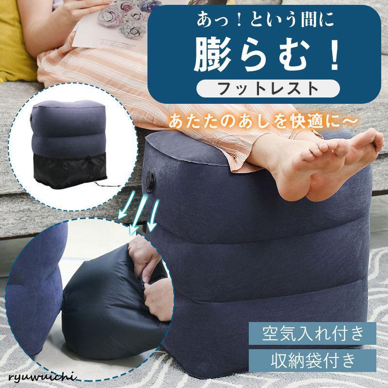 フットレスト 飛行機 エアー 車 新幹線 足枕 足置き クッション デスク むくみ 空気入れ付き 収納袋付き