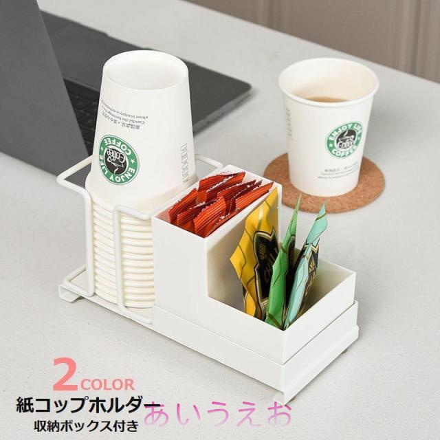 紙コップホルダー カップスタンド 収納ボックス付き キッチン用品 卓上収納 デスク 職場 休憩用 使い捨てカップ インスタントコーヒー 紅茶 緑茶 テ