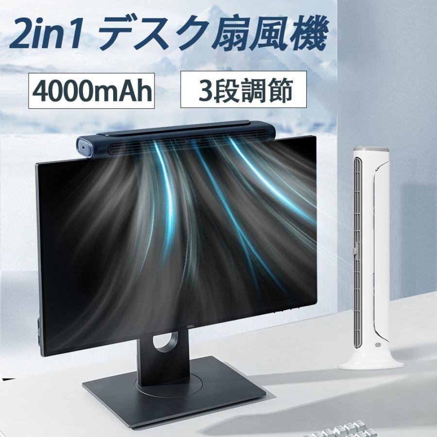 モニター オフィス 卓上 扇風機 静音 扇風機 タワー型 扇風機 卓上 充電式 掛け式扇風機 掛け式ファン 2in1 デスク 軽量 小型 超強風力 車載 ファン