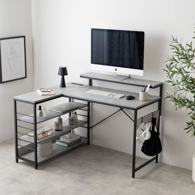 ■★国内メーカー保証付★ 人気商品! L字デスク USB 2口コンセント デスク モニター台 ラック 左右組み換え可能 幅120cm メーカー直送 送