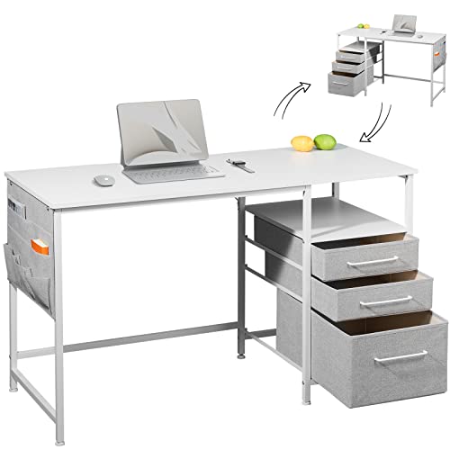 ※他店舗と在庫併用の為、品切れの場合は、ご容赦ください。【最強な収納機能】サイドラック、サイド袋、引き出しも装備していますので、本、辞書、CDなどの収納はとても便利です。収納一体型で空間利用率UP!。仕事用はもちろん、子供の勉強机としてもベストチョイスです。【左右調整可能】引き出しのデザインはお客様のニーズを完全に考慮しました。左にも右にも取り付けることができます。取り付ける時に位置を確定してください。簡単でクリアな日本語の説明書で、手作業が苦手な人でも簡単に組み立てることができます。【抜群な安定感】脚先にはアジャスターも装備しており、不快なガタ