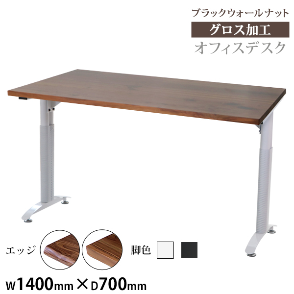 ■オフィスデスク デスク 約W140×約D70×約H76 約W1400×約D700×約H760 ブラックウォールナット材 高級 木製 天板 グロス加工 耐荷重約80