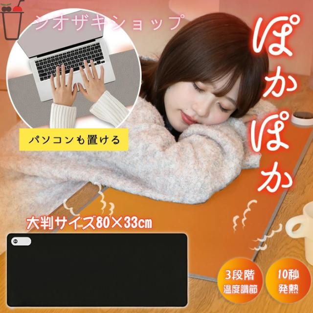 加熱デスクマット デスクヒーター デスク パネルヒーター 手元 ヒーター 発熱マウスマット デスクパット 学習机マット 暖房ホットマット 大判サイズ80×33cm ホットカーペット デスクワーク 過熱保護 寒さ対策 PSE認証済み