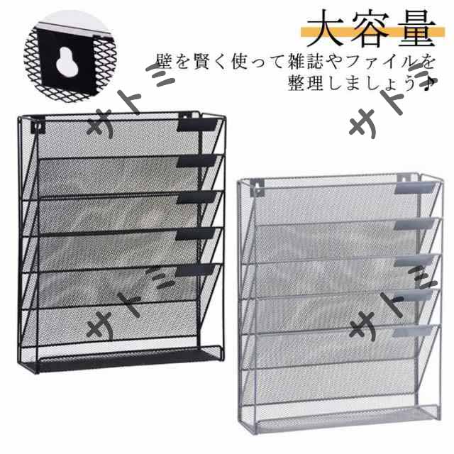 ■吊り下げ デスク 壁掛けラック ファイルラック 卓上 ウォールポケット レターケース 収納ラック マガジンラック 5段 書類トレー メッシュ