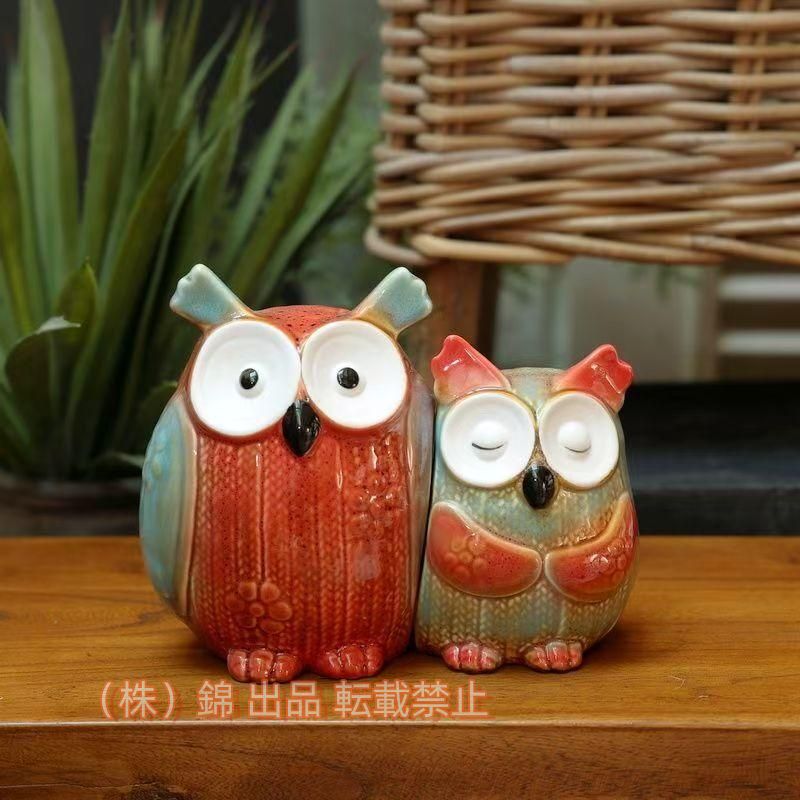 ■ふくろう 置物 飾り かわいい セラミック セット 陶器置物 リビング 寝室 玄関 デスク 卓上 飾り株式会社錦 北欧 アクセサリ デコレーシ