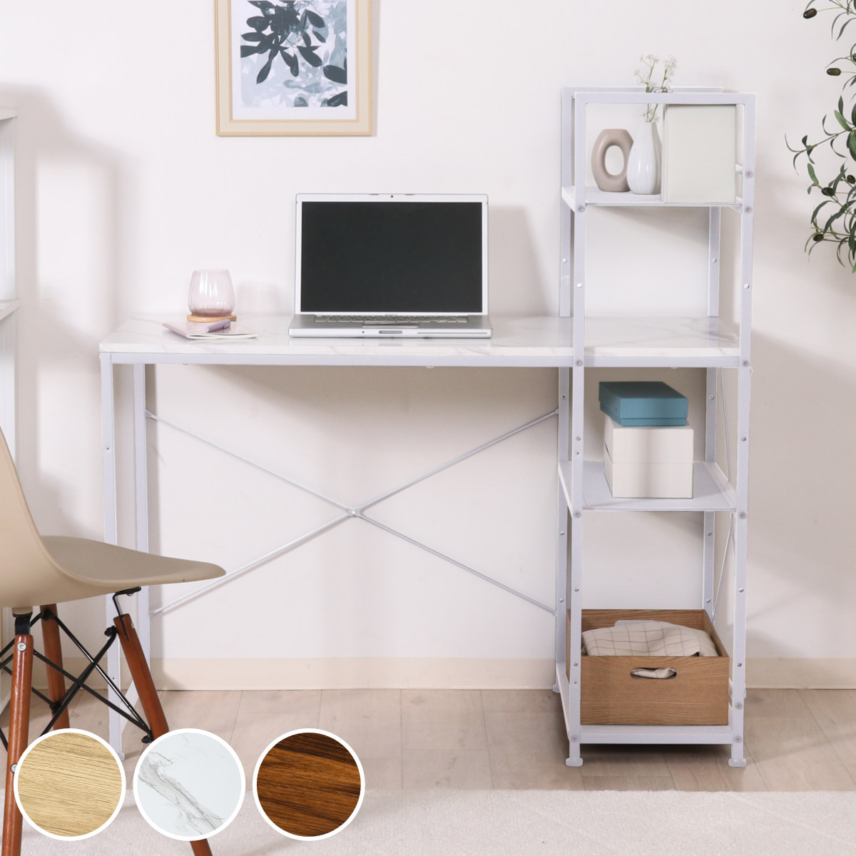 ■ワークデスク ラック3段 幅110cm 左右組み換えラック付デスク ルカ ( 一体型 収納棚 デスク 机 パソコンデスク 勉強机 学習机 大理石調