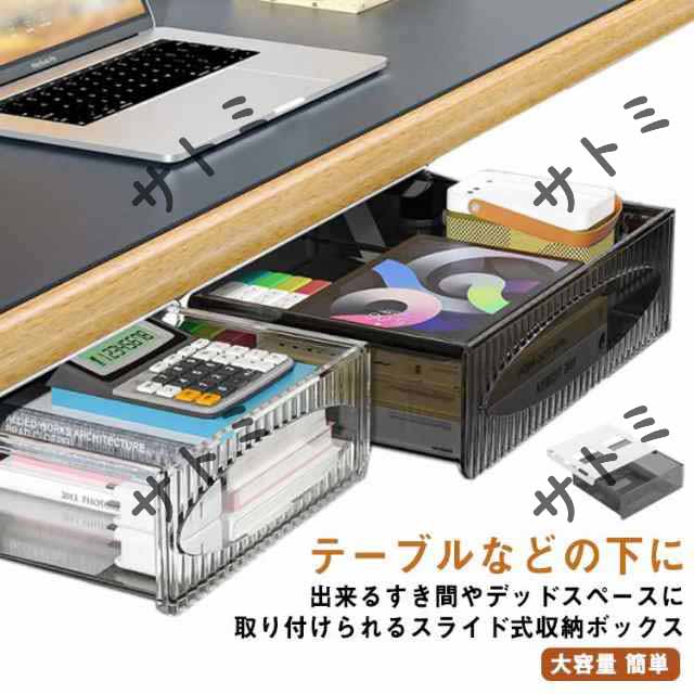 ■スペース活用 隠し式 透明 机の下 取り付けできる引き出し トレー BOX スライド収納 後付け 整理 すき間 収納ボックス テーブル下 デスク