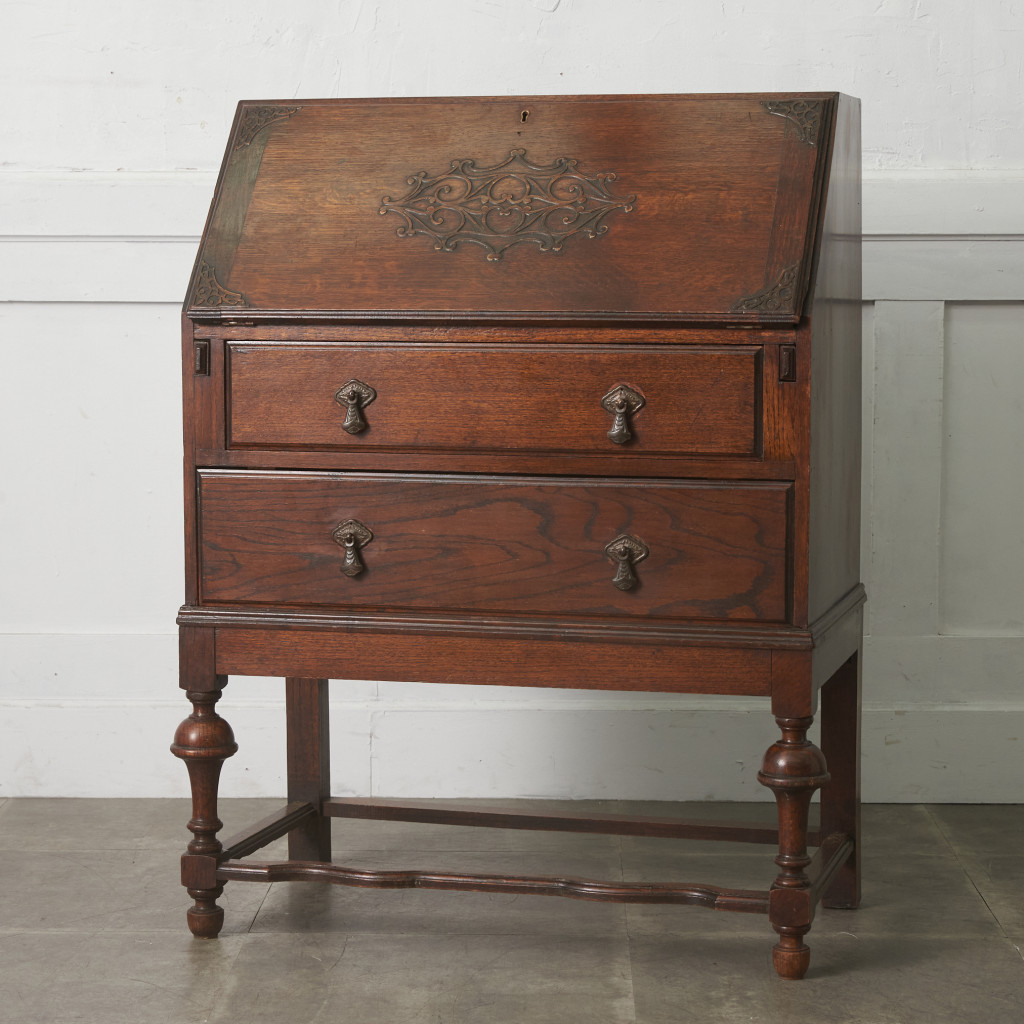■英国 アンティーク ライティング ビューロー 木彫刻 オーク 無垢材 木製 デスク 書斎 勉強机 机 収納家具 イギリス クラシック 82816