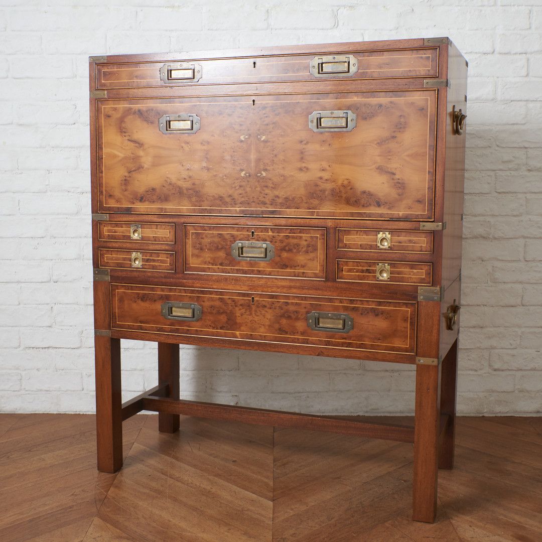 ■鍵付 英国 Kennedy ライティング ビューロー キャンペーンスタイル 机 書斎机 イチイ 収納 デスク チェスト クラシック モダン 94976