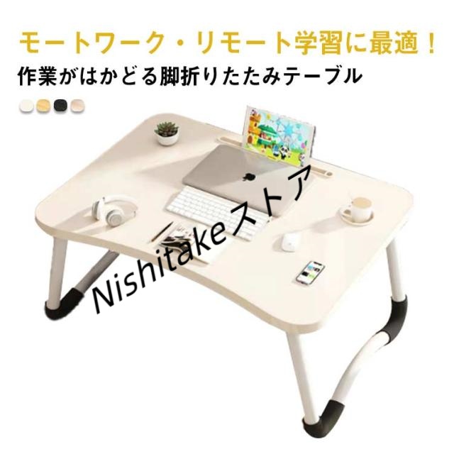 折りたたみデスク テーブル 折りたたみテーブル ベッドテーブル 60*40*28cm ローテーブル ミニテーブル 一人用 ちゃぶ台 座卓 学習机 カップホルダー スマホホルダー 大人 子ども コンパクト スリム 収納 省スペース 食事 勉強 ゲーム 在宅勤務 送料無料