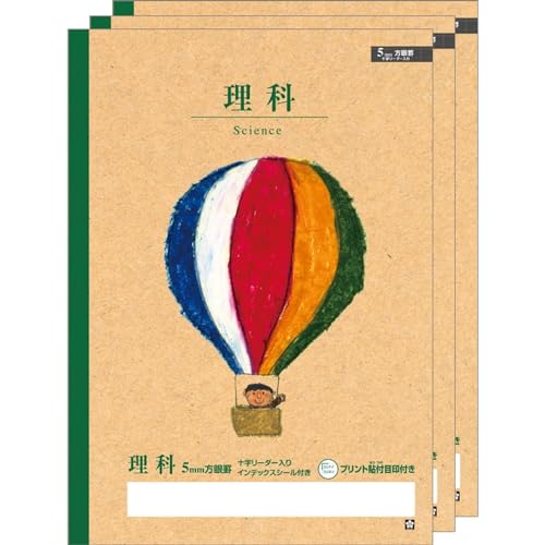 ■サクラクレパス 学習帳 理科 5mm方眼 十字リーダー入り A4 米津祐介 デザイン 気球 3冊 NP942(3)
