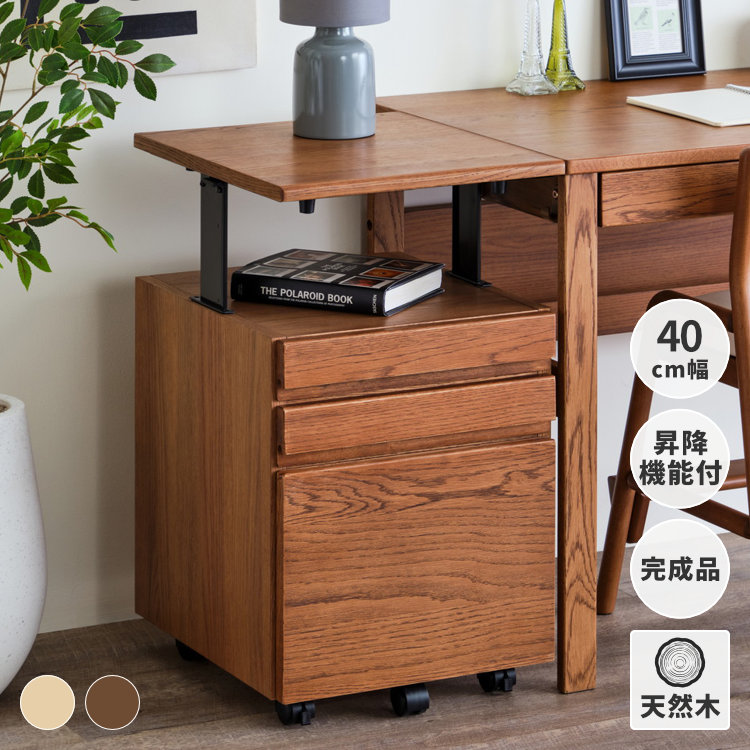 学習ワゴン ワゴン 収納 デスク 収納 引き出し 木製 オーク材 キャスター付き シンプル ブラウン 幅41 勉強 入学祝