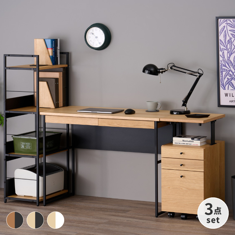 ■【1/1から期間限定価格!】 3点セット デスク つくえ 机 パソコンデスク PCデスク 学習デスク 学習机 シンプル 勉強机 ワゴン 学習ワゴン