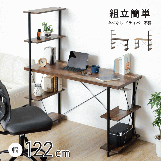 ■パソコンデスク ラック付きデスク デスク 幅120cm 組み立て 簡単 ドライバー 不要 PCデスク コーナー ゲーミングデスク オフィスデスク