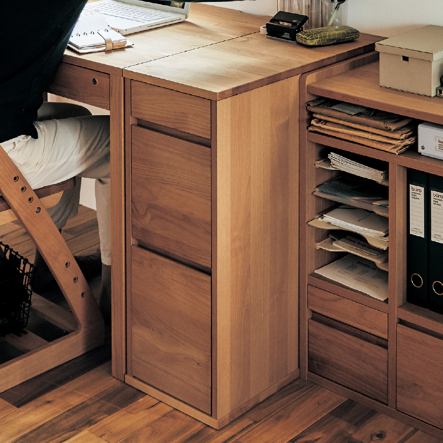 アルダー材を自然系オイルで仕上げたサイドラック。引出しの枠材には、ほのかに香る国産ひのき材を塗装せずに使用しました別売りの「国産学習デスクメーカーと考えた学習机」の天板と同じ高さなので、並べて置けばデスクスペースが広がります引出し下2段は重たいものもラクに取り出せるフルスライドレール付き。引出しの最下段は、A4サイズが立てて入れられます【SUGI工場と一緒につくりました】SUGI工場は、国内生産にこだわり、安心・安全で人と環境に配慮した製品づくりを続ける家具メーカー。昭和初期には、生徒用机・椅子、跳び箱などの体育用具全般を製作する「学校用家具工場」として高い評価を得ました。【ポイント】徹底した国内生産木材の仕入れから部材になるまでSUGI工場で一括管理することで、日本の子どもたちが安心して長く使える家具づくりを続けています。自然系オイル塗装だから安心肌に直接触れる家具だから、植物系天然材料からなる安全性の高い自然系オイル塗装で仕上げました。引出し内部に無塗装の国産ひのき材を使用ひのきは耐久性や保存性にとても優れており、天然の抗菌・抗カビ・防虫効果があると言われています。【ベルメゾンデイズ/BELLE MAISON DAYS】ベルメゾンデイズ は、「今日より明日、明後日が楽しくなる暮らしの提案」をコンセプトとした、ベルメゾンを一歩リードするオリジナルブランドです。どの商品を組み合わせても居心地の良い 美しい空間がつくれるように考えられています
