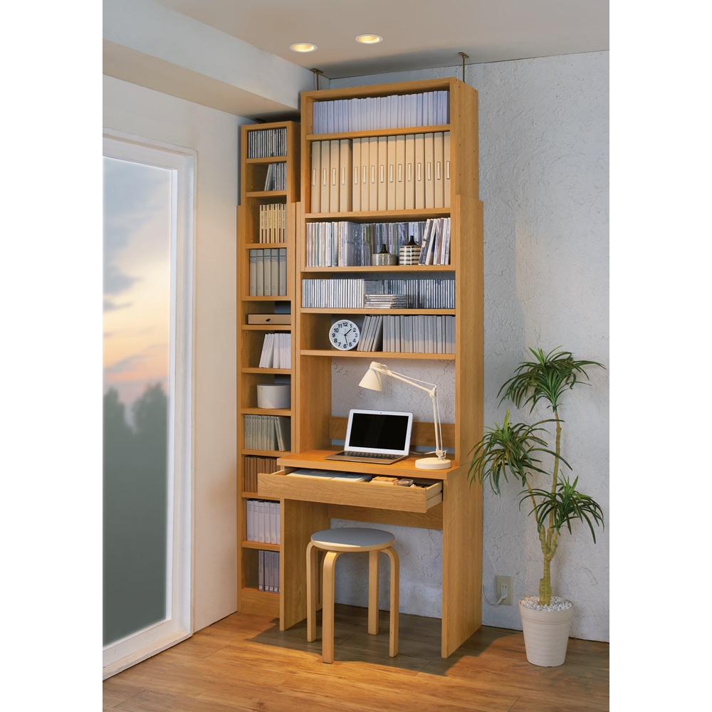■1台で壁いっぱいに本を収納!本好きのための壁面つっぱり本棚 本棚付きデスク(奥行45cm) 机 パソコン PC ワーク 袖机 627635