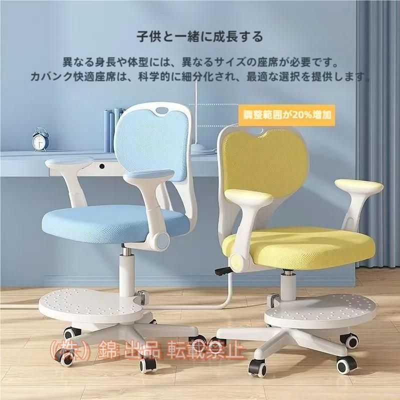 【姿勢がよくなり・集中力アップ】学習椅子の座り面は通気性良いメッシュ素材で、夏でもお尻も蒸れにくく、やわらかすぎず、ほど良い硬さ、沈み込みがなくクッション、お子様が座るだけで自然と背筋が伸びて、姿勢がよくなるように設計された学習椅子です。になったりせず、正しい姿勢で学習に取り組むことにも配慮されました。【自動ロックでき・定キャスター】遊んでしまわないか心配なご両親の方々のために、子供が座った瞬間キャスターロックできる感圧式ロック機能を備えた小学生学習椅子を仕上げました、小学生や低学年の子供が使っている最中に後ろへ下がる恐れがありません。【高さ調節可・長く使える】子供の体に合わせて、座り面の高さの調整が可能ですので、お子様の成長や兄弟間での貸し借りなど、簡単に自分に合う高さに調整できる点もこの学習椅子のポイントです。【取り外し可能・足置きと背もたれカバー】成?に合わせて?置きの位置を変えたり、取り外したりできれば?く使うことができる勉強椅子ですが、夏場には子供の背中の蒸れが少ないため取り外し可能な背もたれカバーもデザインしました。