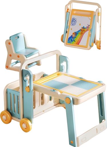 ■OSJ 機能チェア+デスクセット 学習机 6IN1 デスク調整可能 折りたたみ式 キッズチェア ブロックデスク ホワイトボード 組立簡単 赤ちゃん